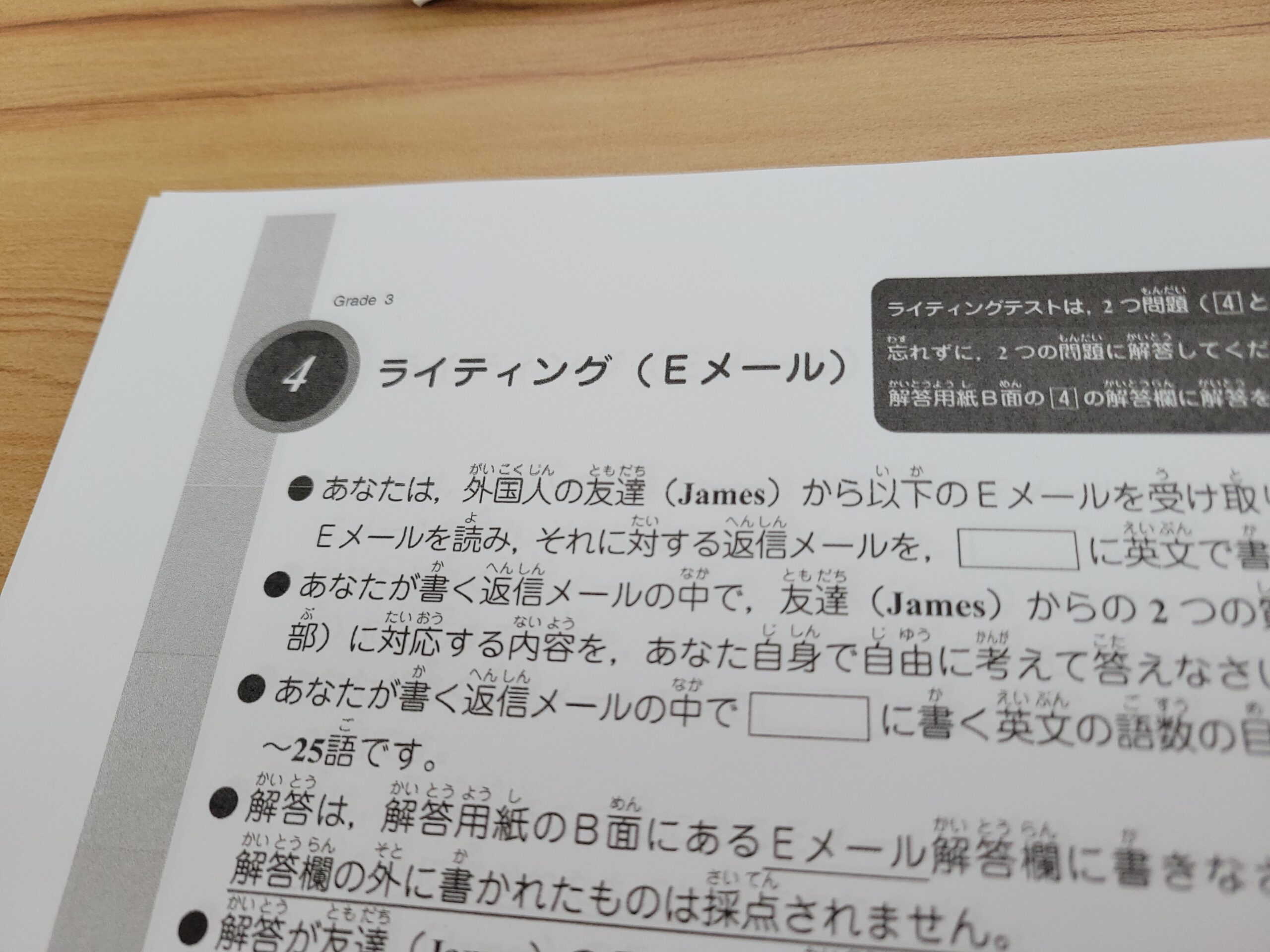 英検3級のライティングには、「Eメール」「英作文」の2つがあります。